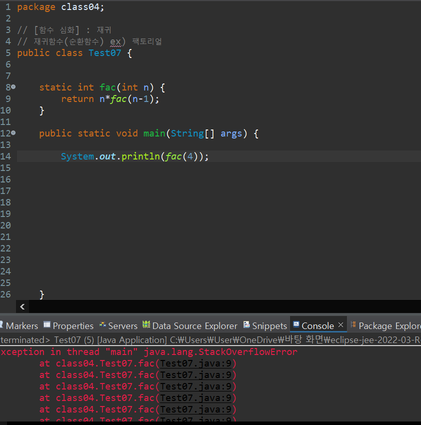 상기와 같이 오류가뜨는 이유는 n이 멈추지않고 -1, -2, -3...n까지 무한대로 실행되어