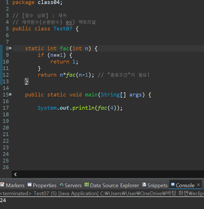 이 문제를 해결하기 위해서는 if문을 사용하여 n을 1까지만 수행하게 해주면 된다.