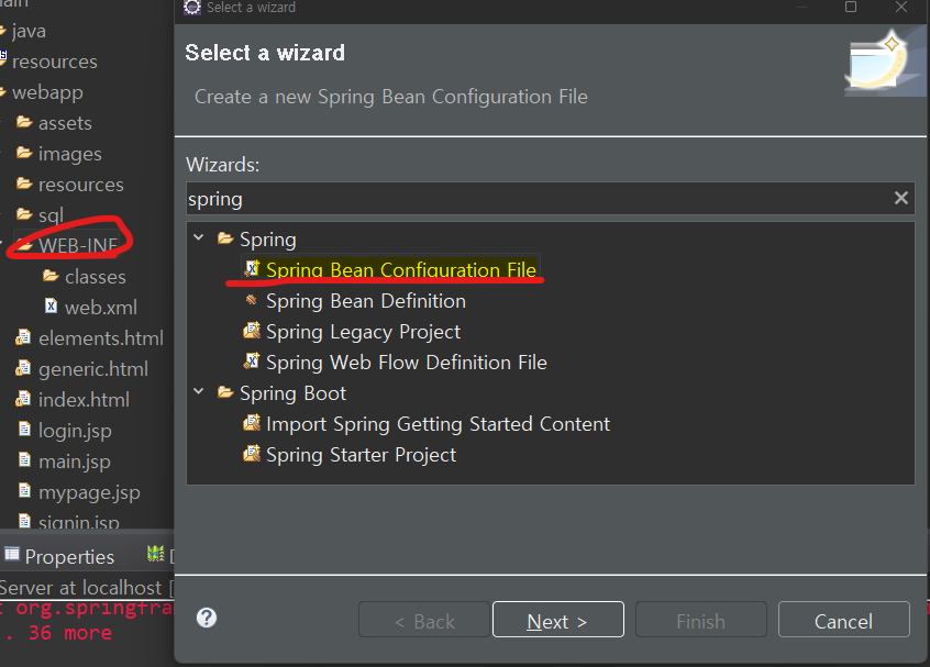 DispatcherServlet-servlet.xml 이름으로 스프링 컨테이너가 참고할 xml 파일을 생성해보려고 한다.