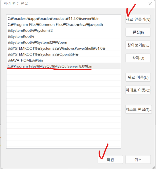 MYSQL 설치 후 cmd 창에서 명령어를 실행하려면 환경변수 설정을 먼저 해주어야 한다.
