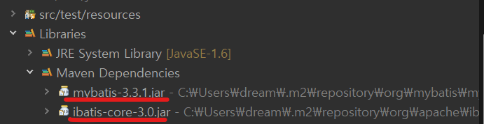 pom.xml에 저장 후 Maven Dependencies에 mybatis, ibatis jar 2개가 추가되었으면 성공!