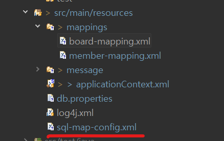 src/main/resources 하위에 mappings라는 패키지를 생성 후