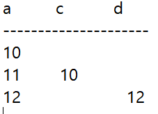 하기 코드를 출력하게되면 값은 a : 12, c : 10, d : 12가 나오게되는데