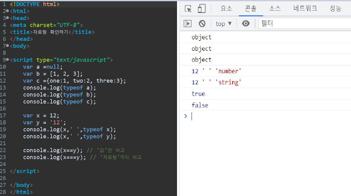=== : 값과 자료형까지 비교