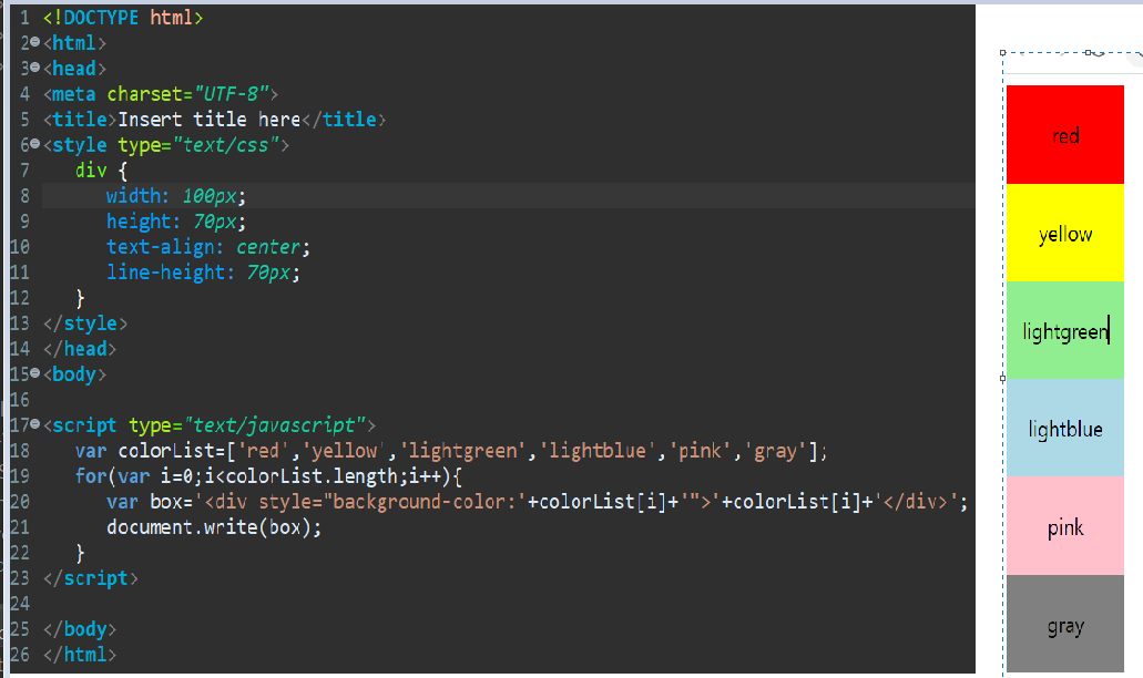 for문 배열을 사용하여 색상띠 만들기