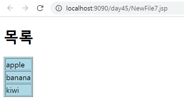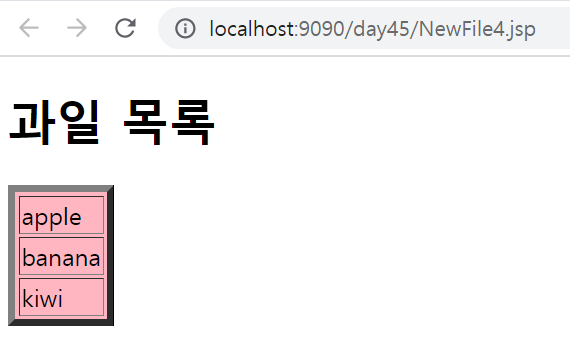 <kim:test border="5" bgcolor="lightpink">과일 목록</kim:test>