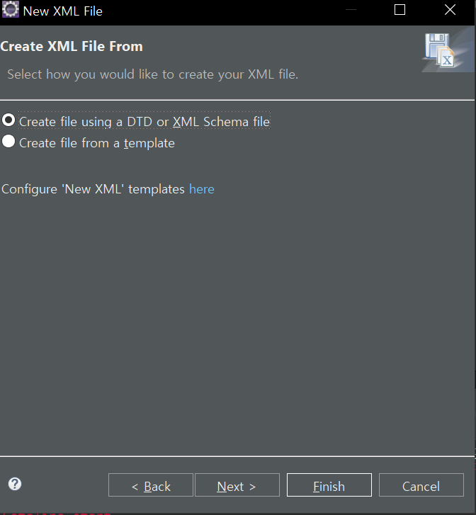 Create file using a DTD or XML Schema file을 선택