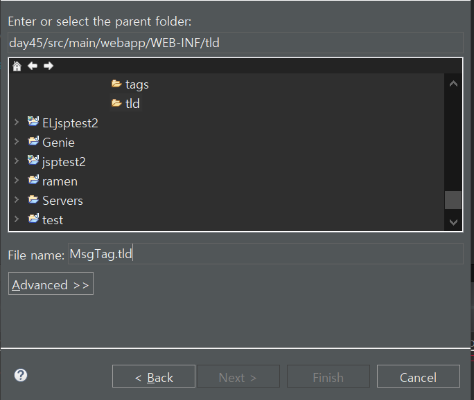 WEB-INF파일에 태그를 넣어둘 파일 생성 후, 그 폴더 내부에 태그(tag) 파일 생성